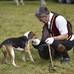 Die beiden Schleppenleger Rainer Herbst und Dr. Armin Kirchdorfer forderten die feinen Spürnasen von Schleppe zu Schleppe auf korrektes Ausarbeiten der Spur, was die pfeilschnellen Beagles mit Bravour meisterten auch dank der hervorragenden Möglichkeiten sich immer wieder in Naturgewässern abzukühlen.