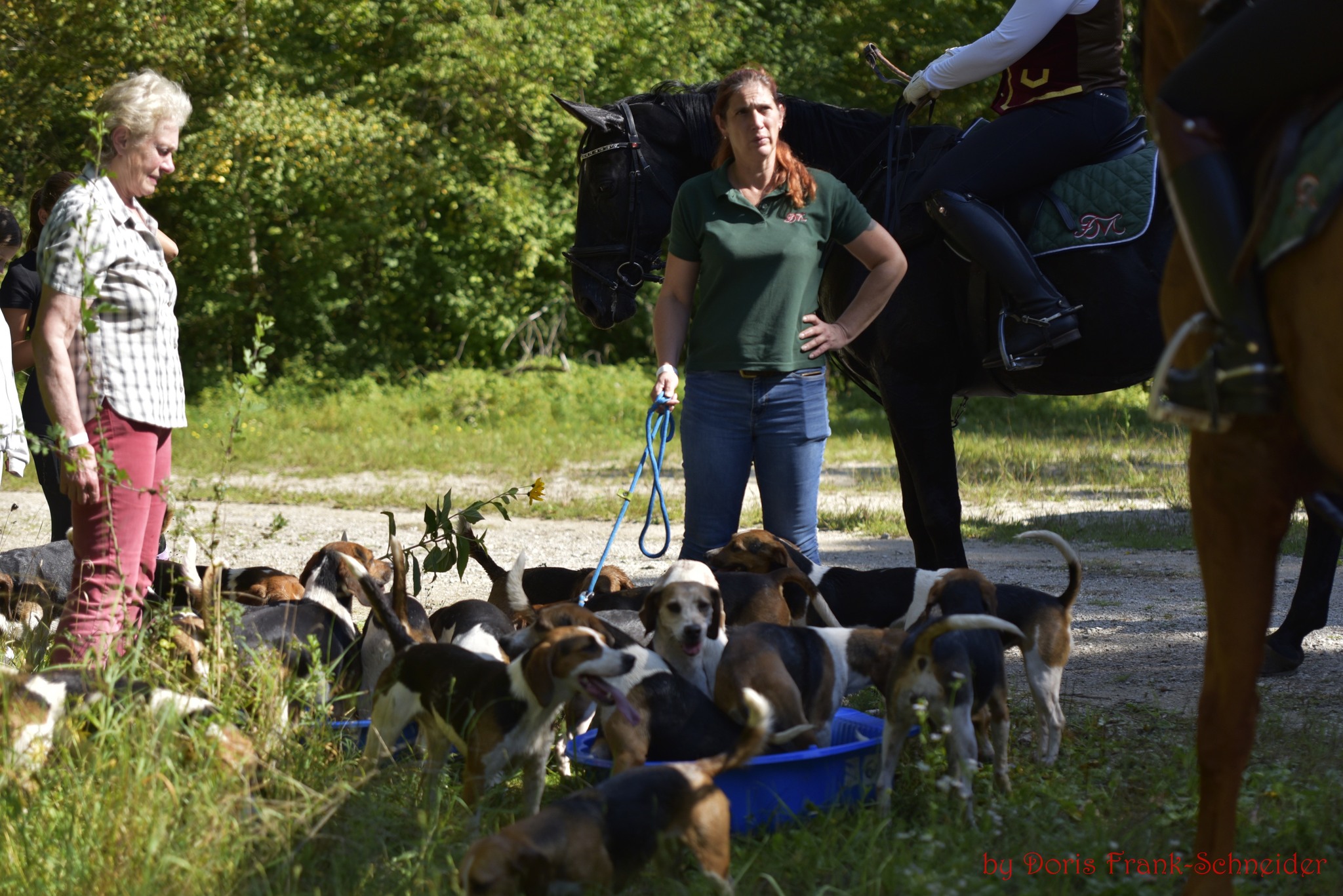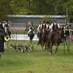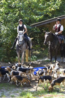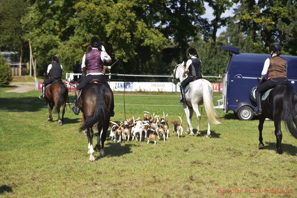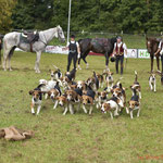 Nach einer kurzen Begrüßung des 1. Vorsitzenden Alexander Urosevic und dem Master der Frankenmeute Uwe Hochbrückner sowie der musikalischen Einstimmung durch die Reiterlichen Jagdhornbläsern Nürnberg trafen sich die Reiter zu Pferd auf dem großen Springplatz und warteten gespannt auf die eifrigen Hauptakteure dieses Tages, die Beagles, die voller Freude und Tatendrang aus dem Meutefahrzeug flitzten und mit einem kräftigen Horrido begrüßt wurden.