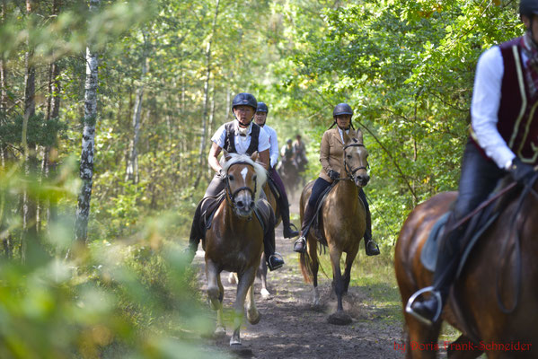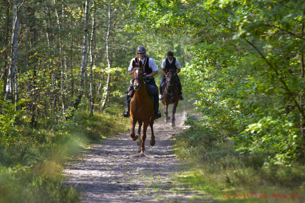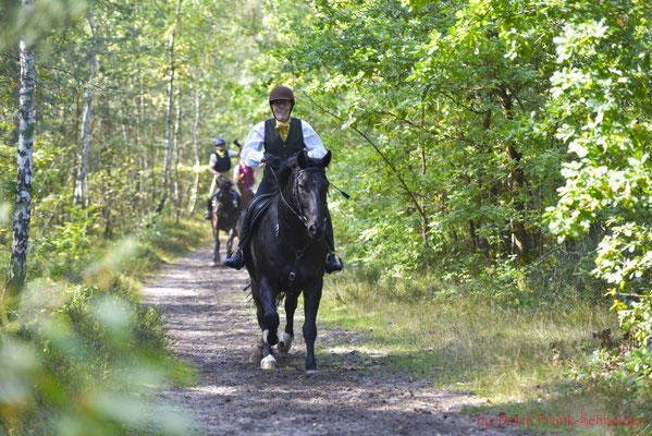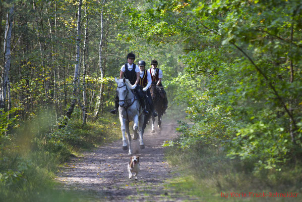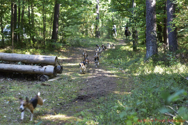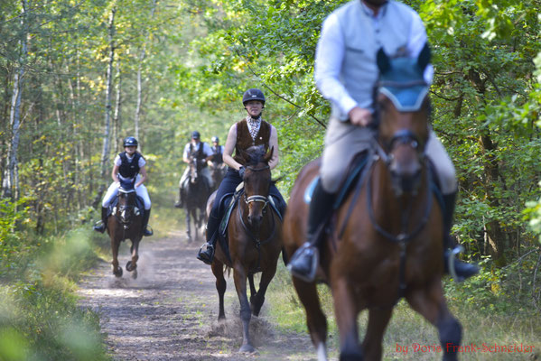 Das Geläuf war griffig und die Sprünge perfekt im Wald integriert. Hier war reiterliches Können und Geschick gefragt die flott galoppierenden Pferde gut an den Hilfen zu haben um die gestellten Aufgaben mit Wegverzweigungen, Wendungen und Sprüngen lösen zu können, ohne den Anschluss an die Meute oder den Vorreiter zu verlieren.