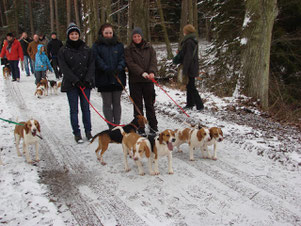 Um die Beagles auf die Herausforderungen einer Schleppjagd vorzubereiten, sind regelmäßige Trainings im Vorfeld unerlässlich. Dabei geht es nicht nur darum, die Kondition des Packs nach der Winterpause wieder aufzubauen, sondern auch um die gezielte Ausbildung der Junghunde.